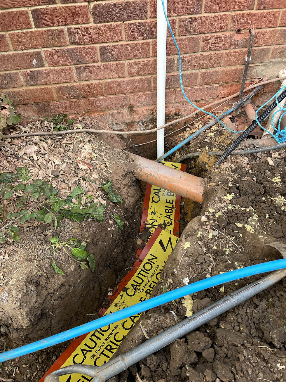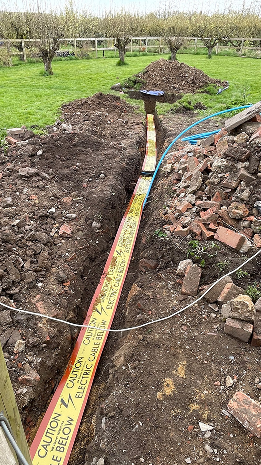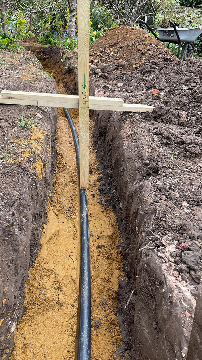 Now if anyone has ever dealt with the usual inefficiencies and red tape of energy companies you can imagine the pain I was expecting with such a request. In reality I was completely wrong. We contacted them, they came out soon after (exactly when they said they would) and surveyed the situation. Together with us they devised a plan as to where they would splice into the cable underground and where to route the new cable to the bungalow. Even better they were happy for us to dig the trench and the hole for the connection ourselves which saved us money. A date was set and they also made sure our electricity supplier (Scottish Power) would be on site to install and activate the new meter. So we set about digging the trench/hole and a couple of days before the job was due to be done UK Power Networks contacted us to check all was well and confirm their visit. On the day in question, they were on site promptly and by early afternoon we had a new electricity supply... unfortunately Scottish power weren’t quite as well organised as they had it down as a meter replacement despite my contacting them to ensure they knew what they were doing. Fortunately, the engineer they sent was a ‘get it done’ type and despite the ‘computer saying no’ he got us connected up to the new meter etc. We then ran a temporary armoured cable back to the old consumer unit in the mill to power everything back up for the time being.