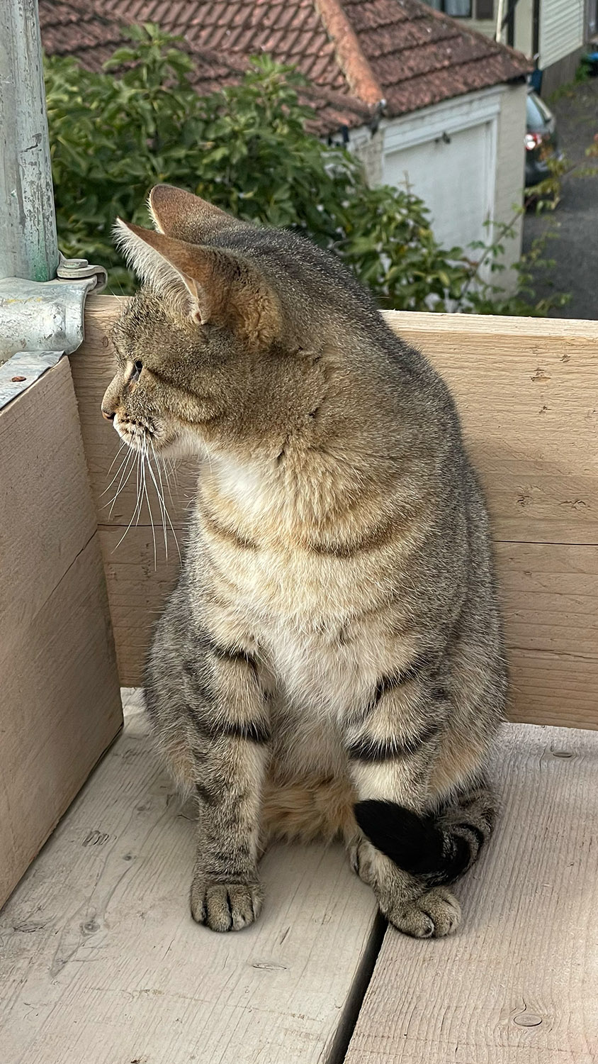 First of the internal block walls going up, temporary ‘A frame’ in position and ridge beam installed... and the building inspection cat on site.